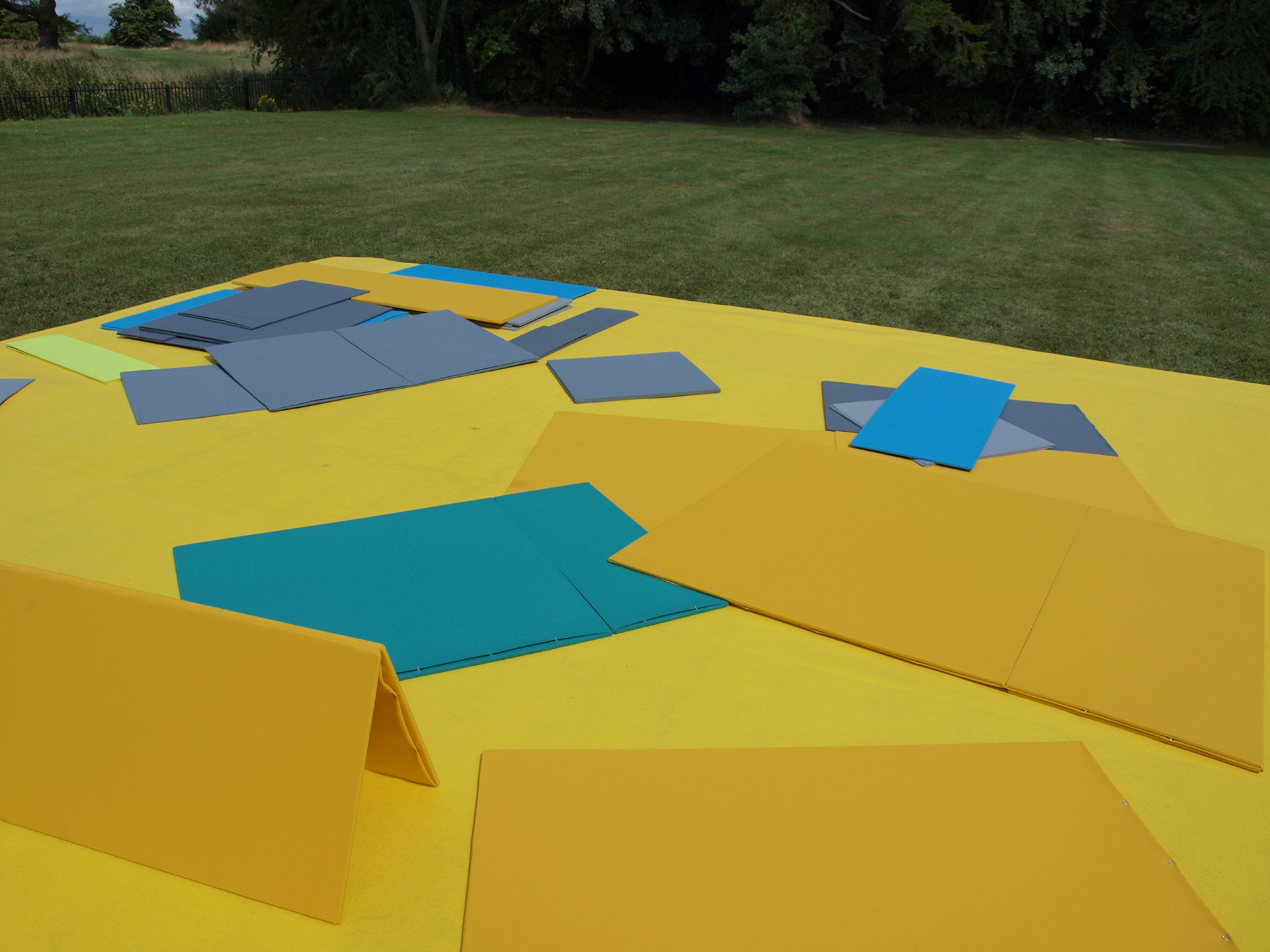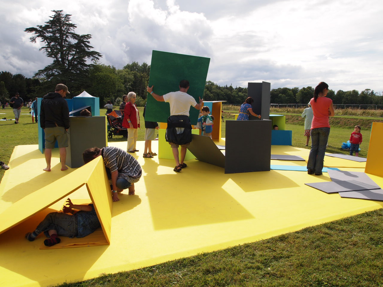 This participatory visual art installation invites visitors to construct and re-construct their own spatial environments to create individual shelters/dens/follies and to collaborate with others to make a large scale installation which can be entered and explored as shared spaces.