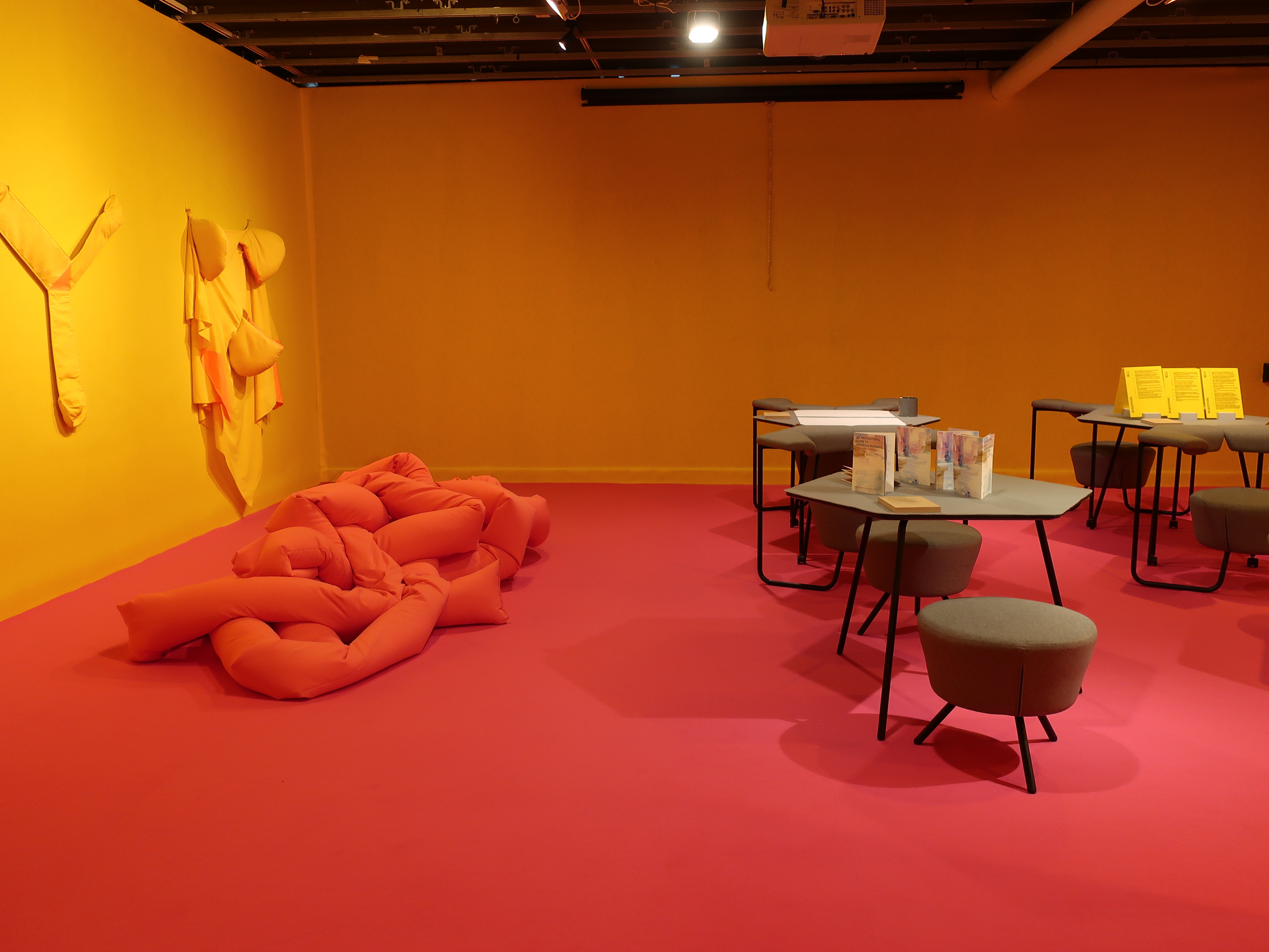 Invited to work as Visual Artist and Exhibition designer for the exhibition INTIMACY at the Science Gallery Dublin, 2018/2019. Drawing on the exhibition theme of Intimacy, the 3D exhibition design was developed in collaboration with the team at Science Gallery , Trinity college Dublin. A room of Huddlewear social clothing was also part of the exhibition. The 2D works ( first three images below ) were made in collaboration with Designer and Art director Rory Mc Cormick and photographer Sarah Doyle.