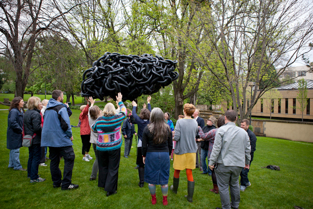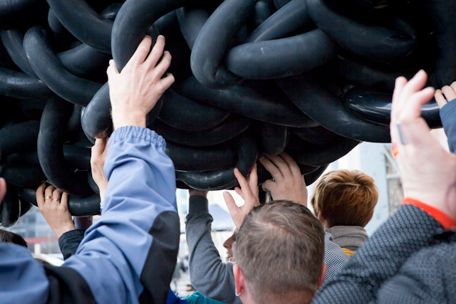 This sculpture travels around as a host to numerous happenings, social encounters and events.